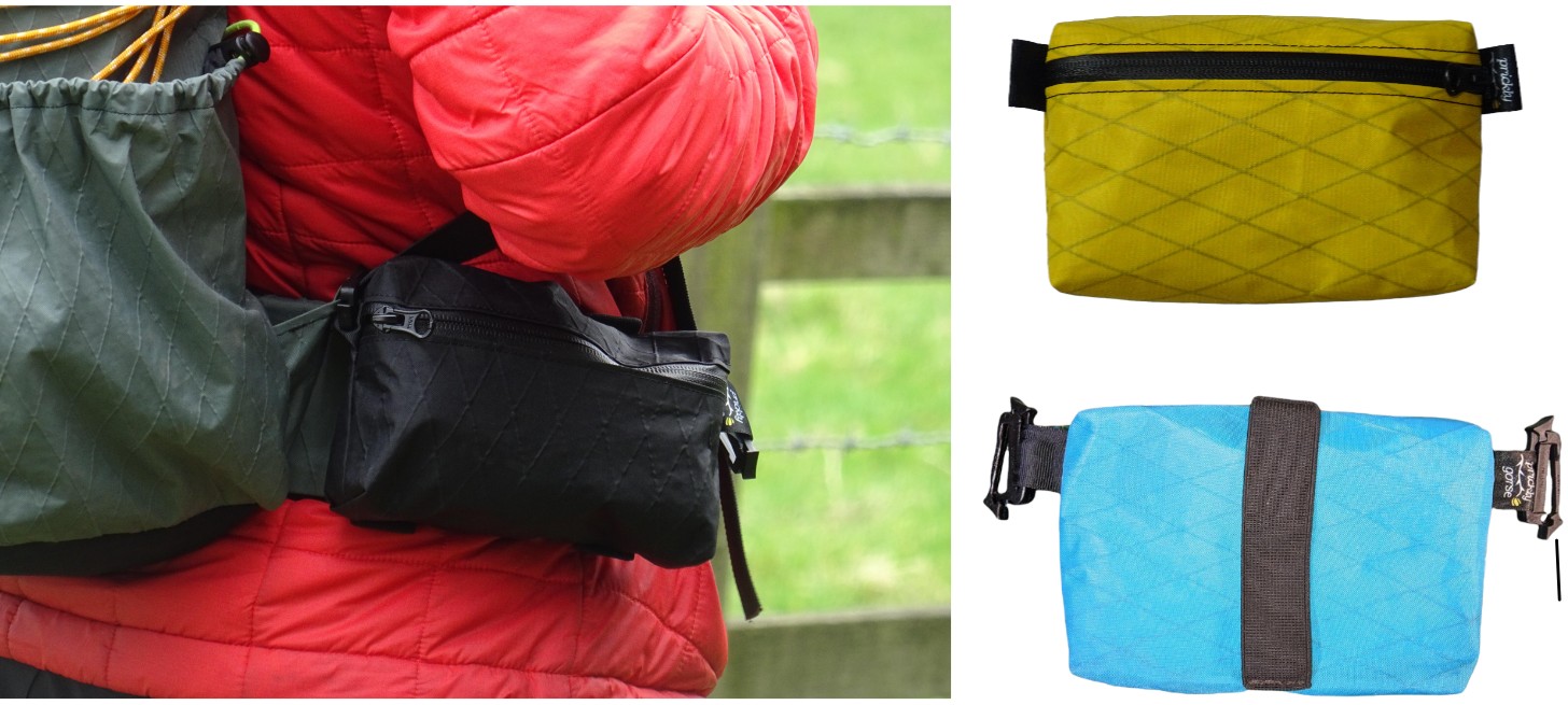 Essential easy access storage for day and long distance hikes. Fit most hip belts up to ~5.5 inch wide, although you can make the elastic longer if needed. It’s your project! Pocket dimensions 6 inch wide, 4 inch tall, 1.5 inch deep