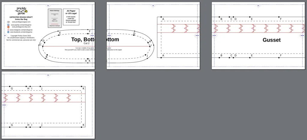 I’ve assumed you want a 1″ webbing ladder around the bag but you can use the labelled points to put webbing or velcro wherever you want. Also assumed you want it 4″ deep but you can just make the gusset shorter.