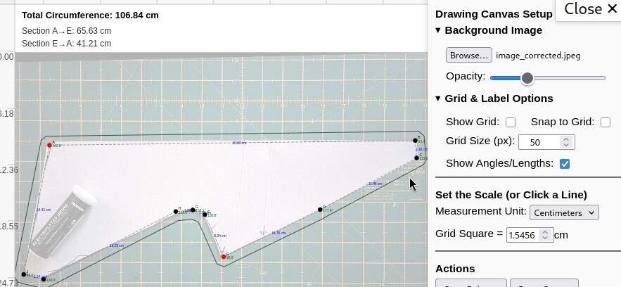 A background image for tracing can be added by clicking the browse button. If the image has a distorted perspective, please use my free perspective correction tool first. No images are uploaded; this all runs locally on your device.