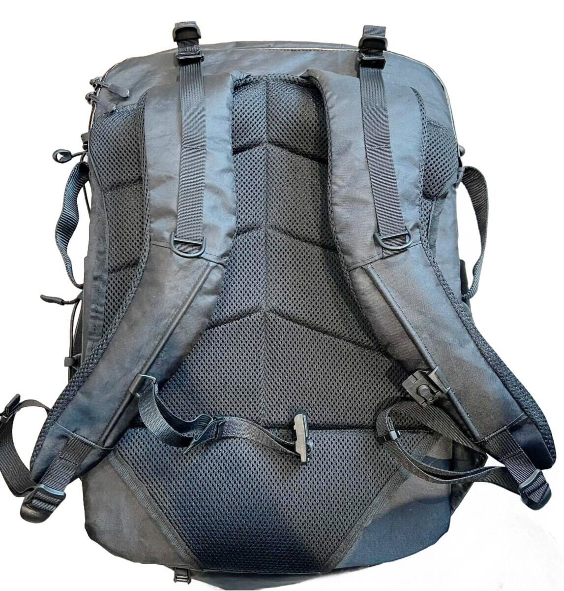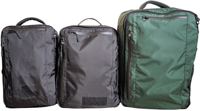Lighter than off the shelf travel packs. This example pack made from 420D nylon, 70D inner liner fabrics and foam in the back panel weighs approx 700g.